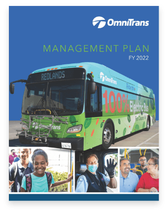 Omnitrans’ Strategic Plan aims to redefine our shared vision, purpose, and commitments to our employees, customers, and community. This plan is the result from months of agency-wide conversations and will serve as a guide to help us meet our goals over the next five years: to connect our communities with safe and exceptional service, champion the work of our employees, maintain financial sustainability, and expand economic opportunity and mobility across the region.