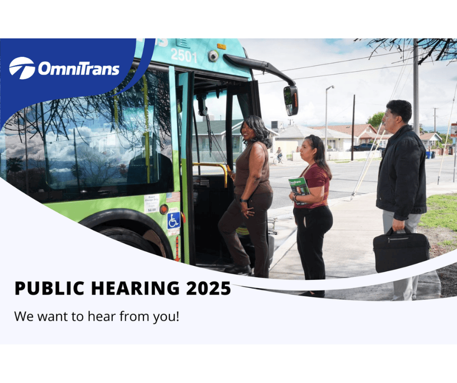 Omnitrans invites you to join the public comment period as part of the initial outreach for the FY 2027–2032 Short‑Range Transit Plan (SRTP) update. The SRTP serves as our 5-to-7-year business plan, guiding service levels, fare policies, and service standards moving forward.