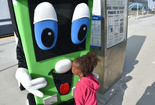 You can meet Buster at many of our community outreach events where he is spreading the word about the benefits of Omnitrans service. He loves having his picture made with friends, so be sure to stop and say hello!